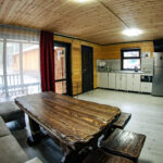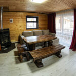 Панорамный вид. Терраса со столом и лавочками.