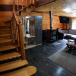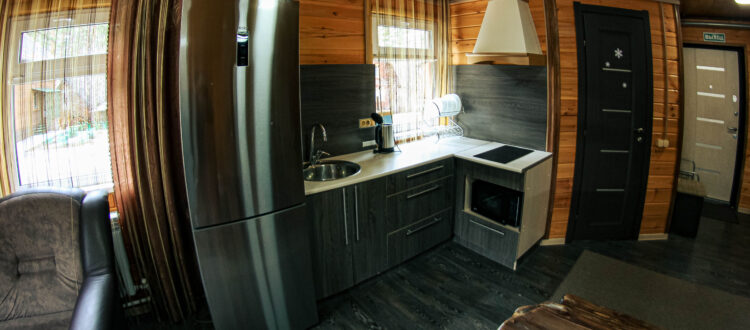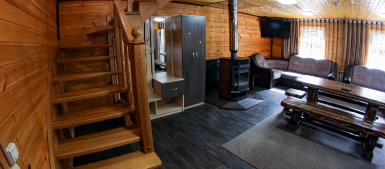 1 этаж : камин, 2 дивана, прихожая, зеркало, обеденная зона, Спутниковое ТВ (200 каналов), кухонный гарнитур с набором посуды, электроплита, холодильник, СВЧ-печь, чайник.