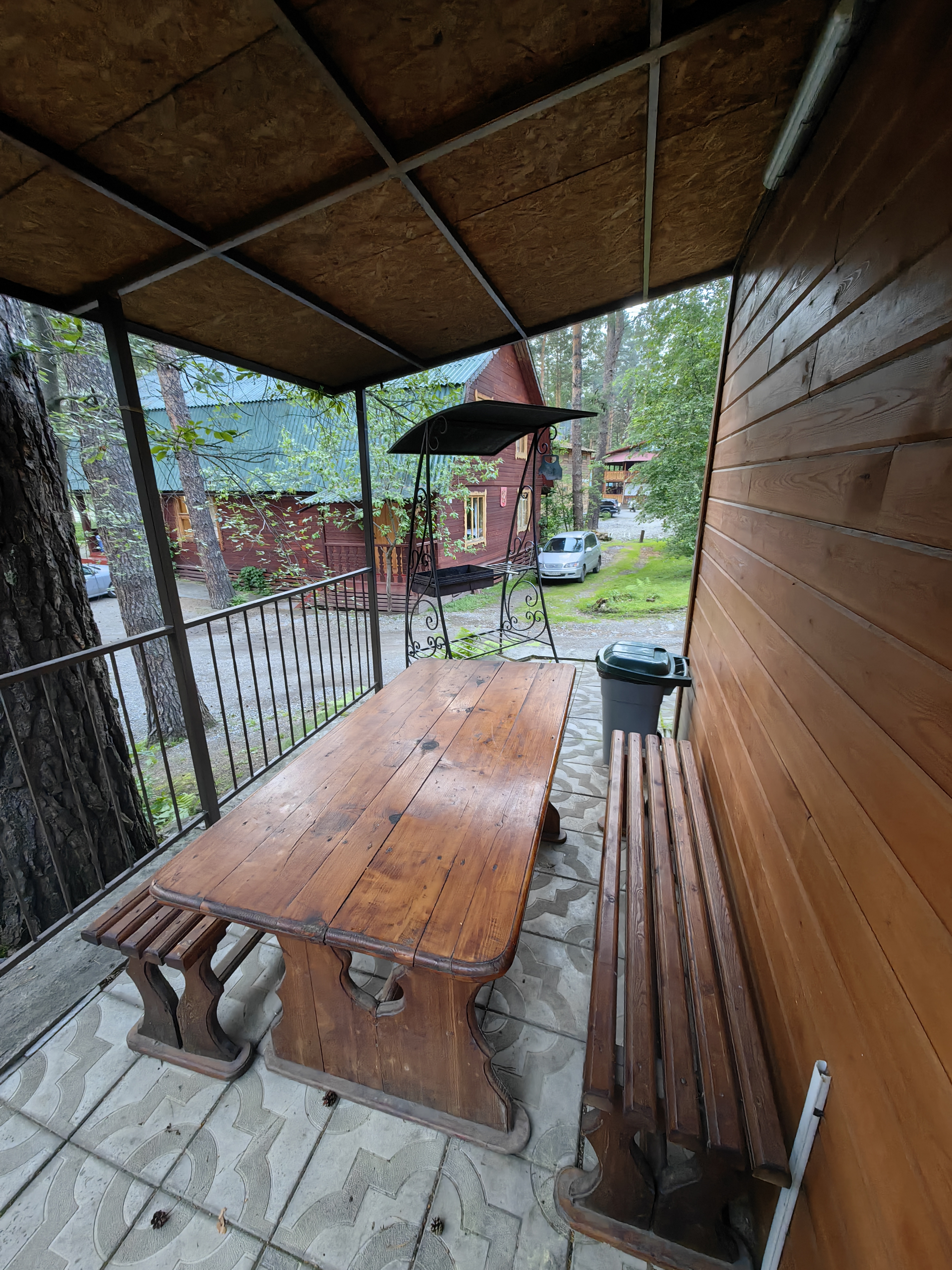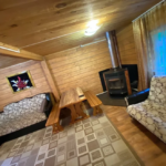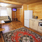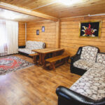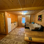 2 этаж: холл-мини с мягкими стульчиками (не считается спальным местом), одна двухспальная кровать, тумбочки, журнальный столик.